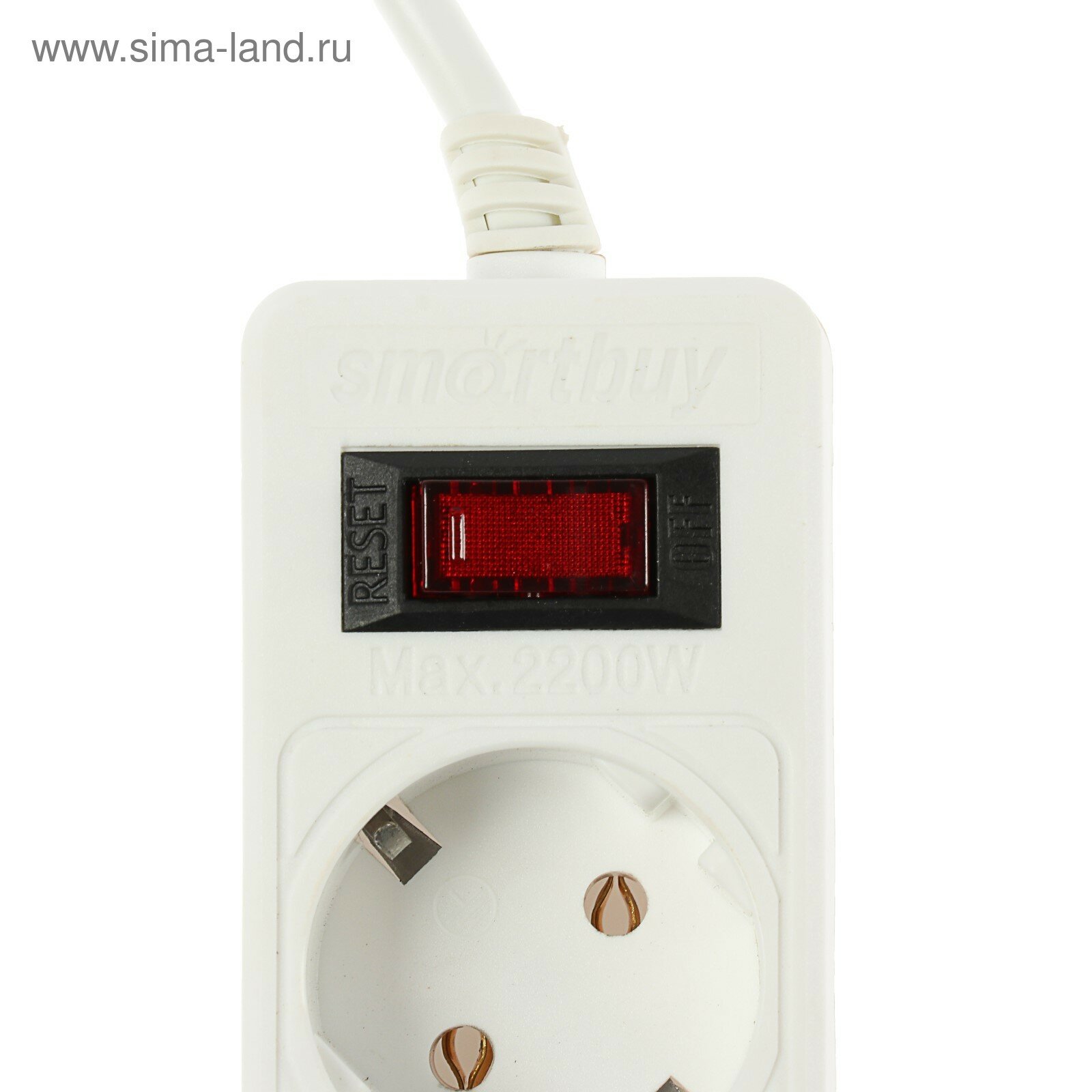 Сетевой фильтр Smartbuy, 5 розеток, 5 м, 10 А, 2200 Вт, с з/к, белый