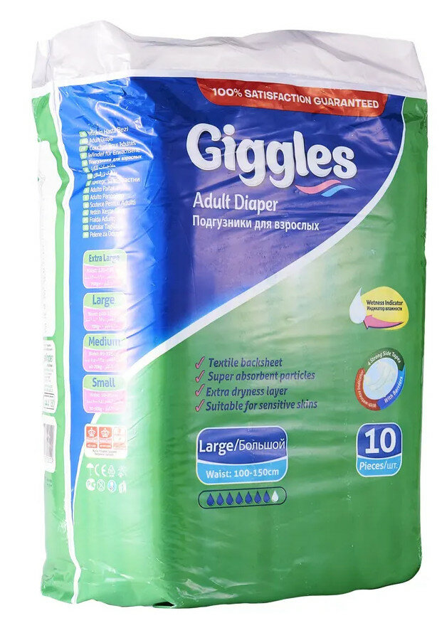 | Комплектация | Подгузники для взрослых Giggles L 10 шт. |