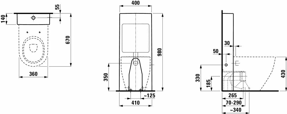 Приставной унитаз Laufen Pro 36х53см, арт. 8.2295.2.000.000.1, без сиденья, универсальный выпуск