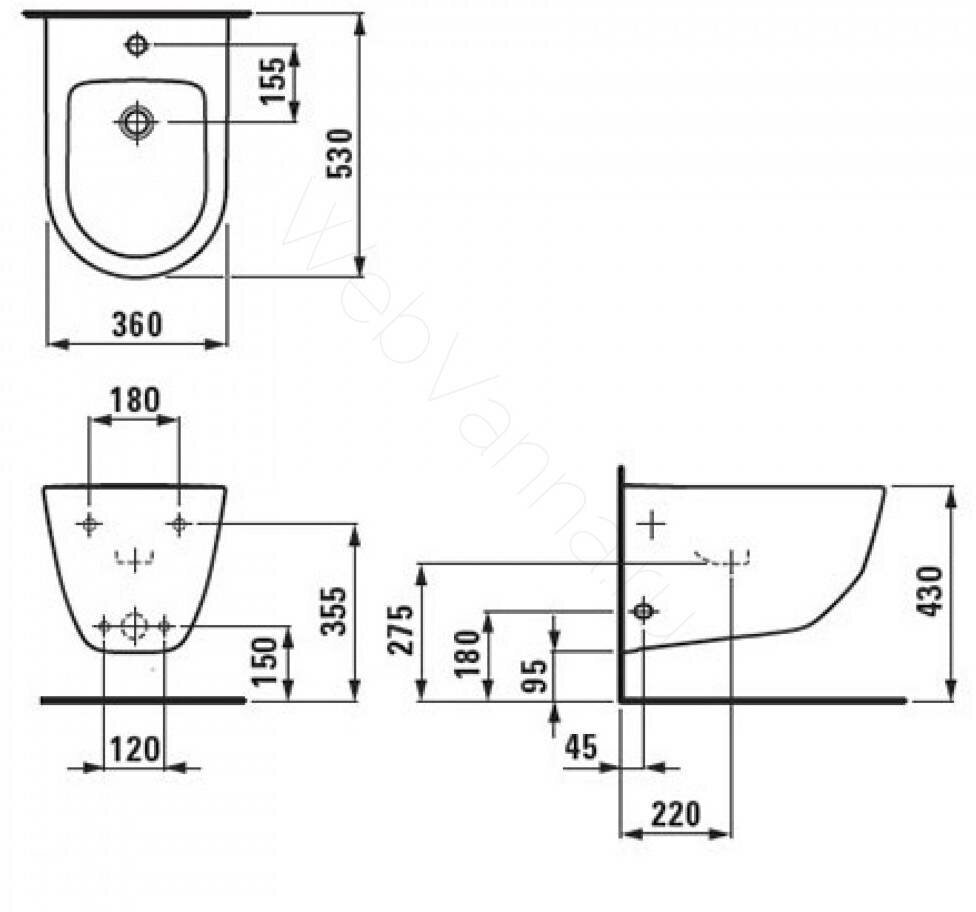 Биде Laufen Pro 36х53см, арт. 8.3095.2.000.302.1, подвесное, без крышки, 1 отверстие под смеситель, без боковых отверстий для подвода