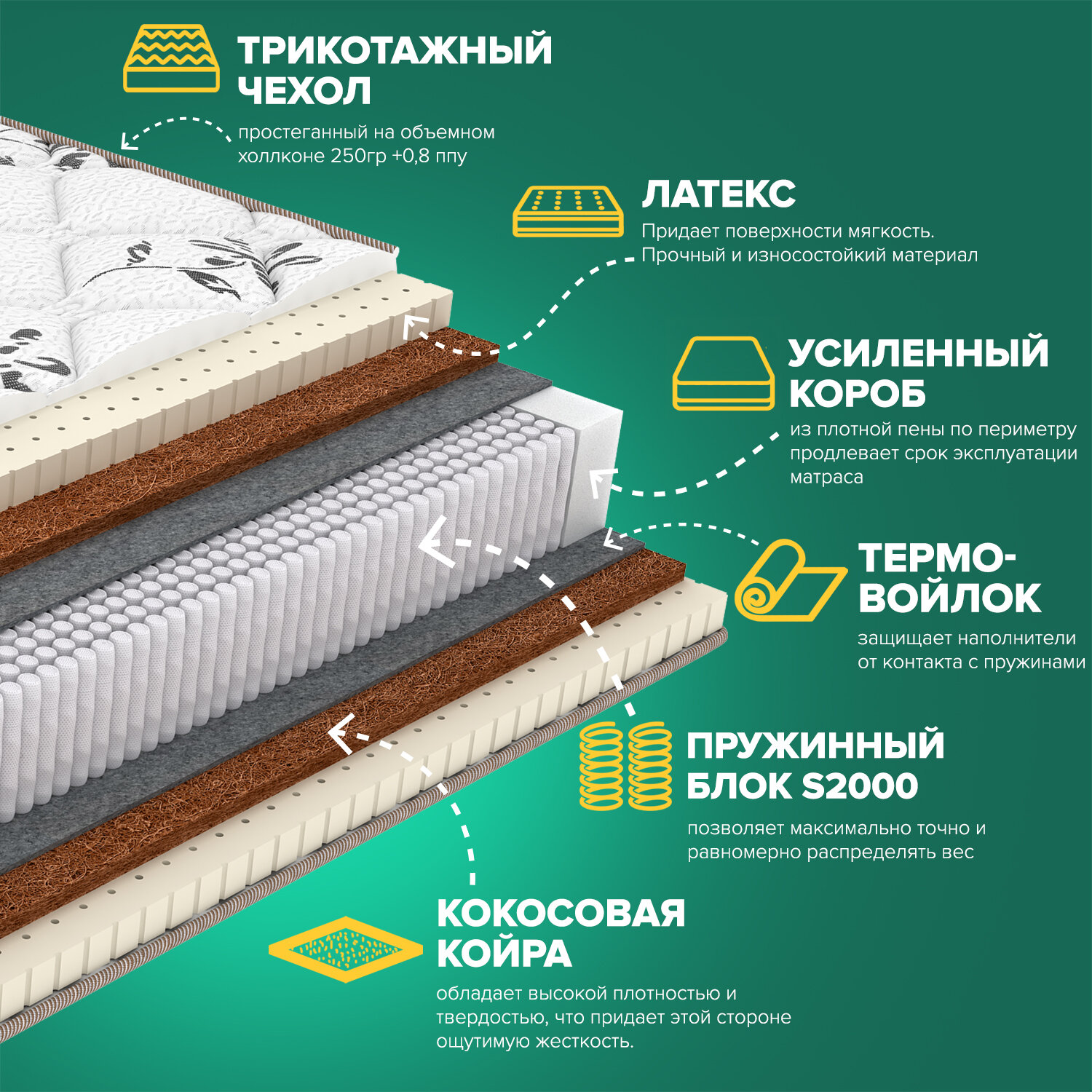 | Наполнитель | кокосовая койра / латекс / латекс |