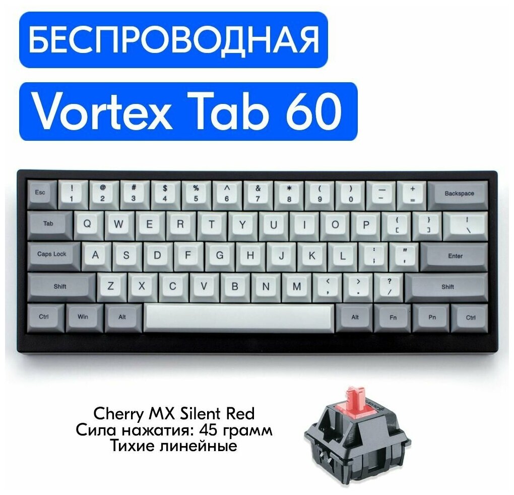 Беспроводная игровая механическая клавиатура Vortex Tab 60 переключатели Cherry MX Silent Red, английская раскладка интересное: