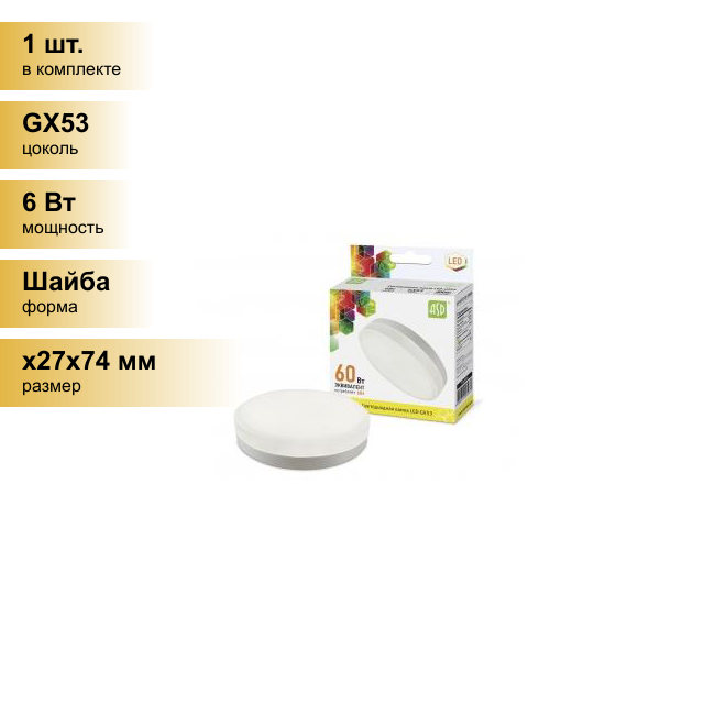 Лампа LED GX53 6.0Вт 3000К 220V 480Лм standard ASD