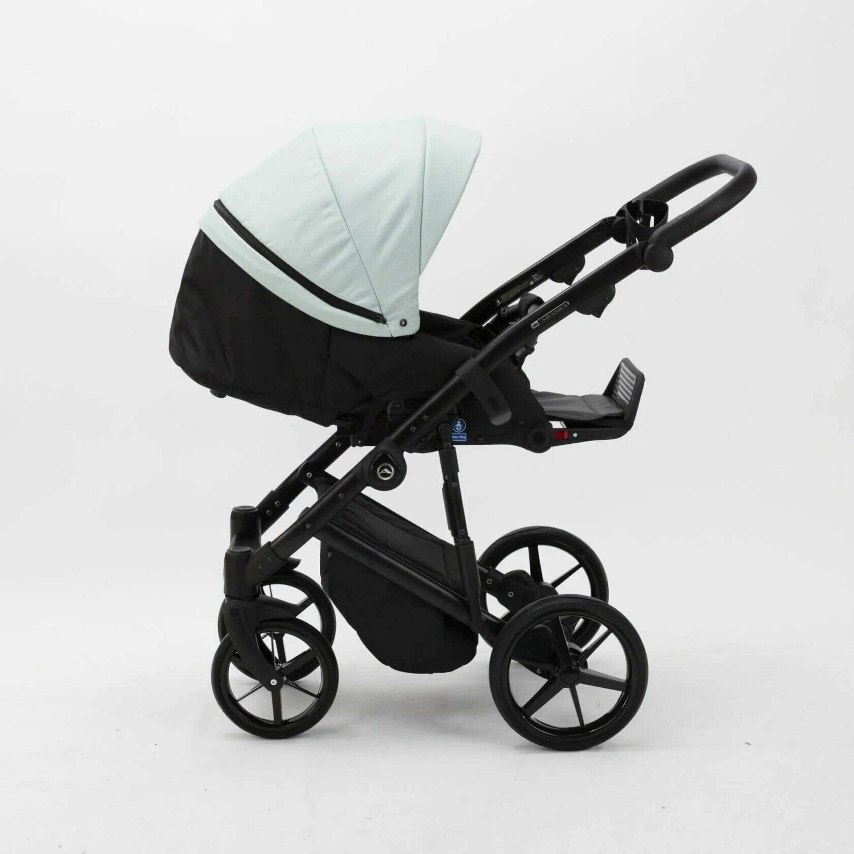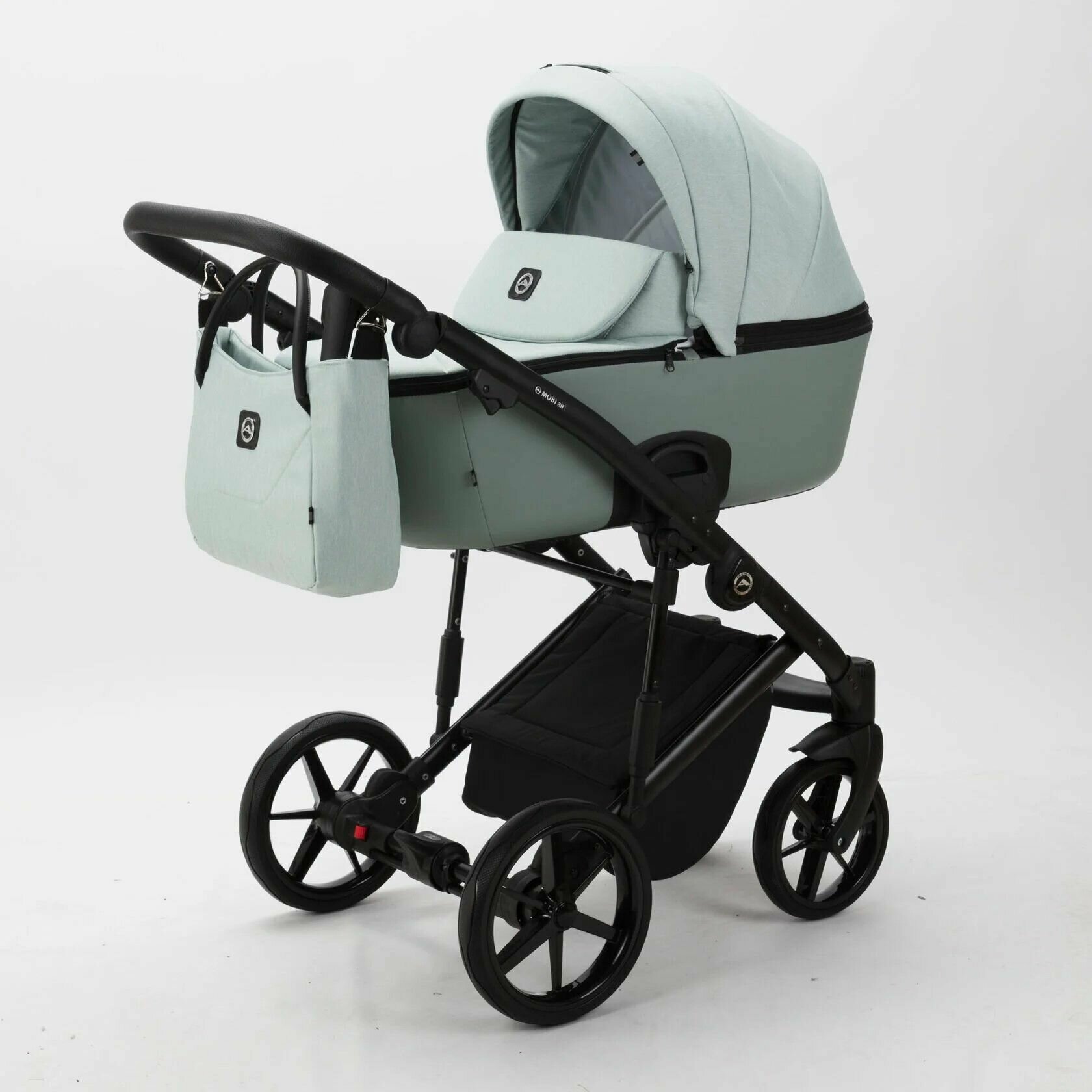 Коляска для новорожденных Adamex Mobi Lux 2 в 1, всесезонная прогулочная детская коляска серо-зеленый текстиль / эко-кожа интересное:
