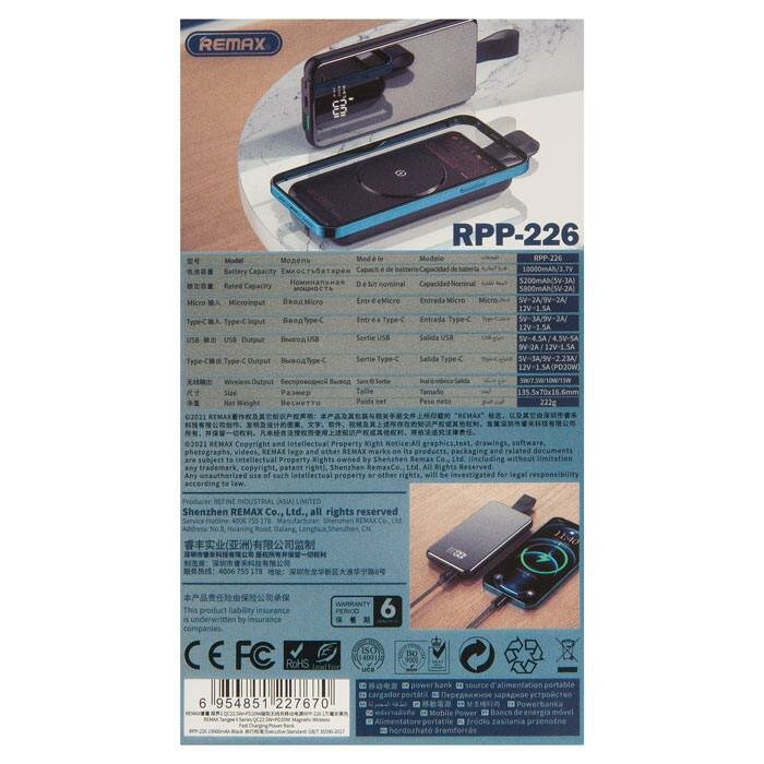 Купить Портативный внешний аккумулятор REMAX RPP-226 Tangee II Series QC 22.5W + PD 20W Magnetic Wireless Power Ban