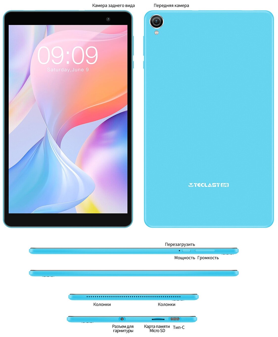 Планшет TECLAST P80T 8, 3ГБ, 32GB, Android 11.0 Go голубой