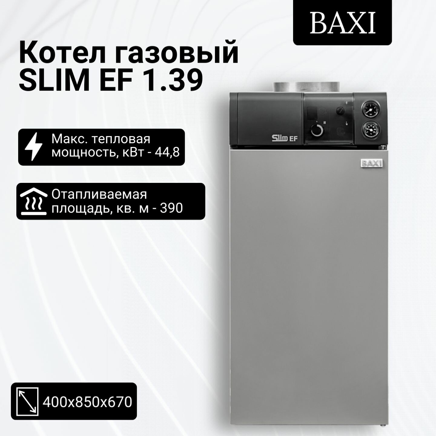 Котёл напольный, Baxi, газовый атмосферный, SLIM EF 1.39, мощность, кВт-39,1-44,8, одноконтурный, камера сгорания-открытая, без вытяжного колпака