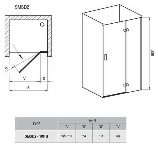 Душевая дверь Ravak SMSD2 100 B R хром + Транспарент