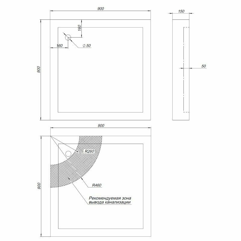 Душевой поддон акриловый белый 90х90см Damixa DX35WT-405-090MT