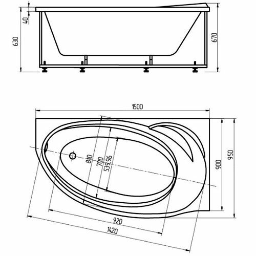 Акриловая ванна Aquatek Бетта 150x95 R BET150-0000058 без гидромассажа с фронтальной панелью с каркасом (разборный) со слив-переливом