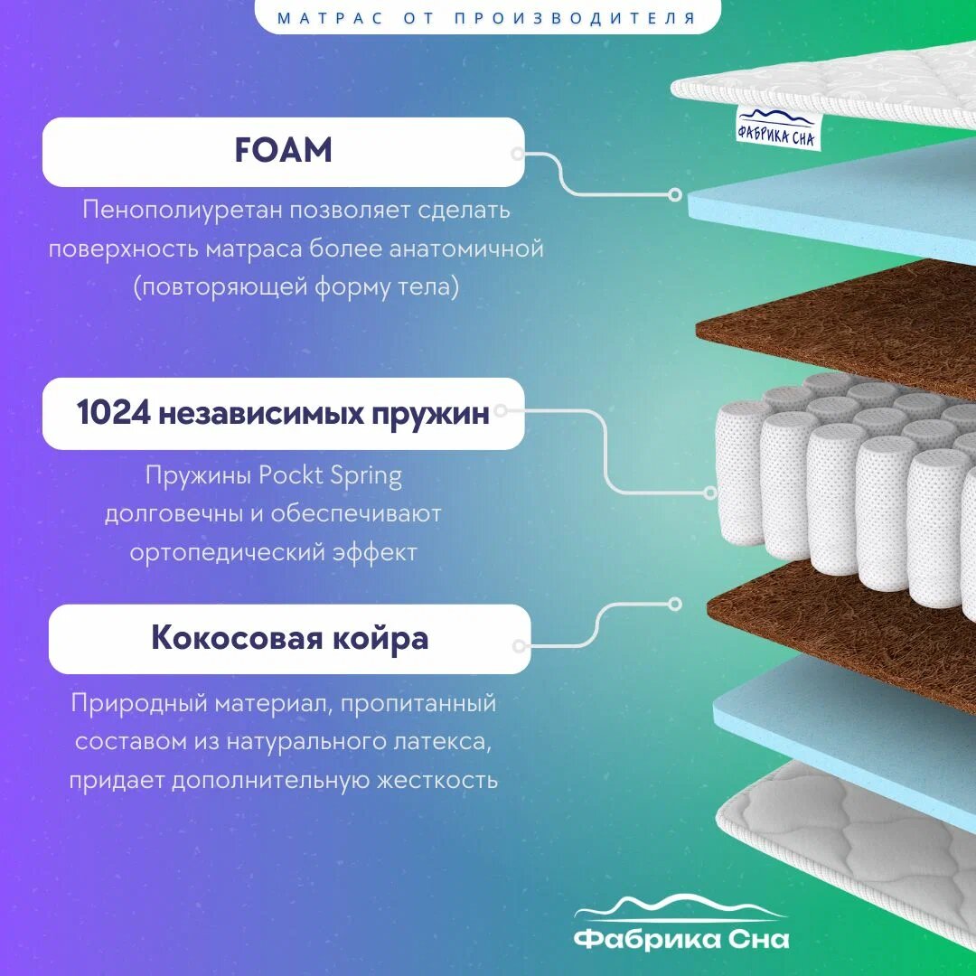 Анатомический матрас Фабрика Сна Bio Perfect, Независимые пружины, 160х200 см интересное: