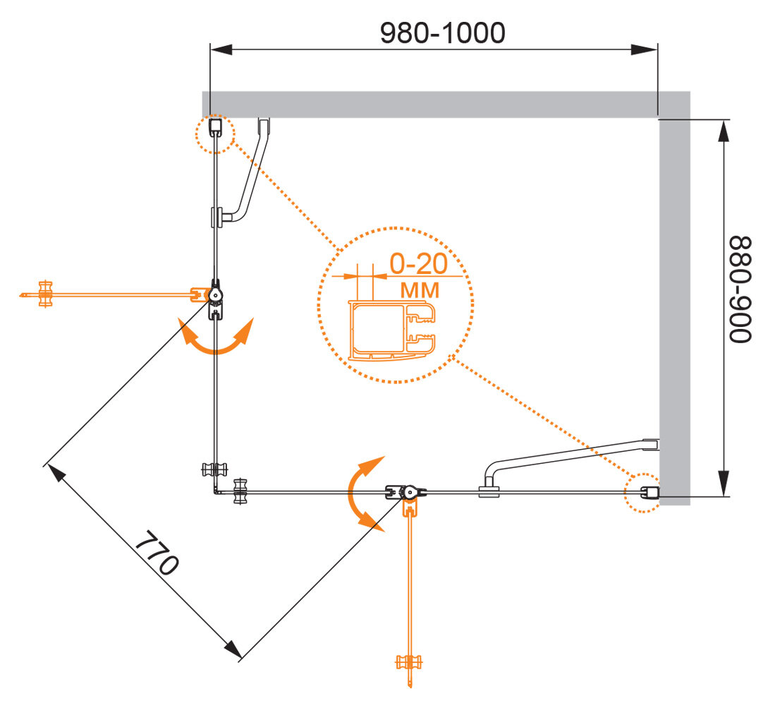 ELENA-W-AH-2-100/90-P-Cr-R Душевой уголок