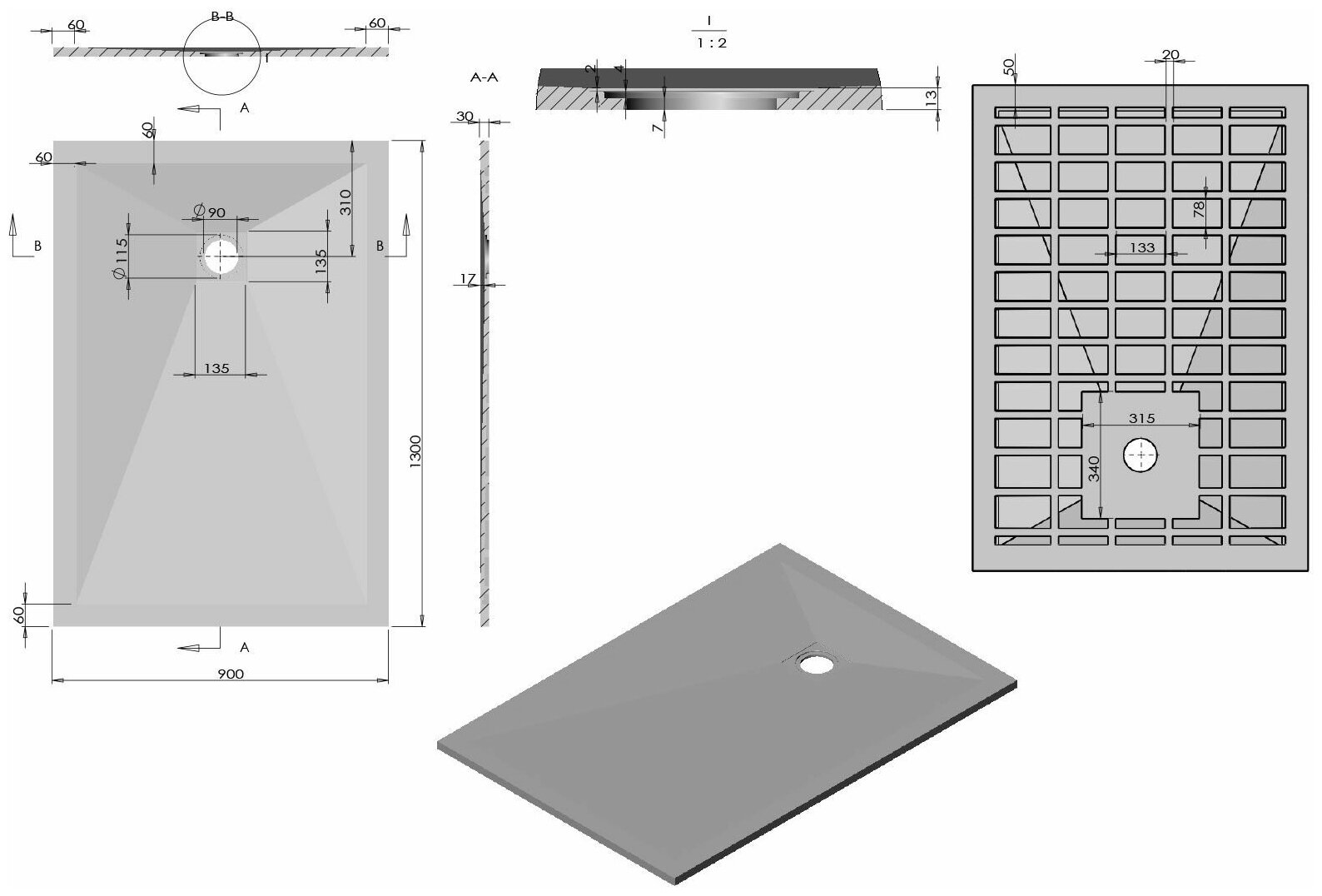 Поддон для душа из искусственного камня VST-4SR9013W, 1300*900*30, белый матовый