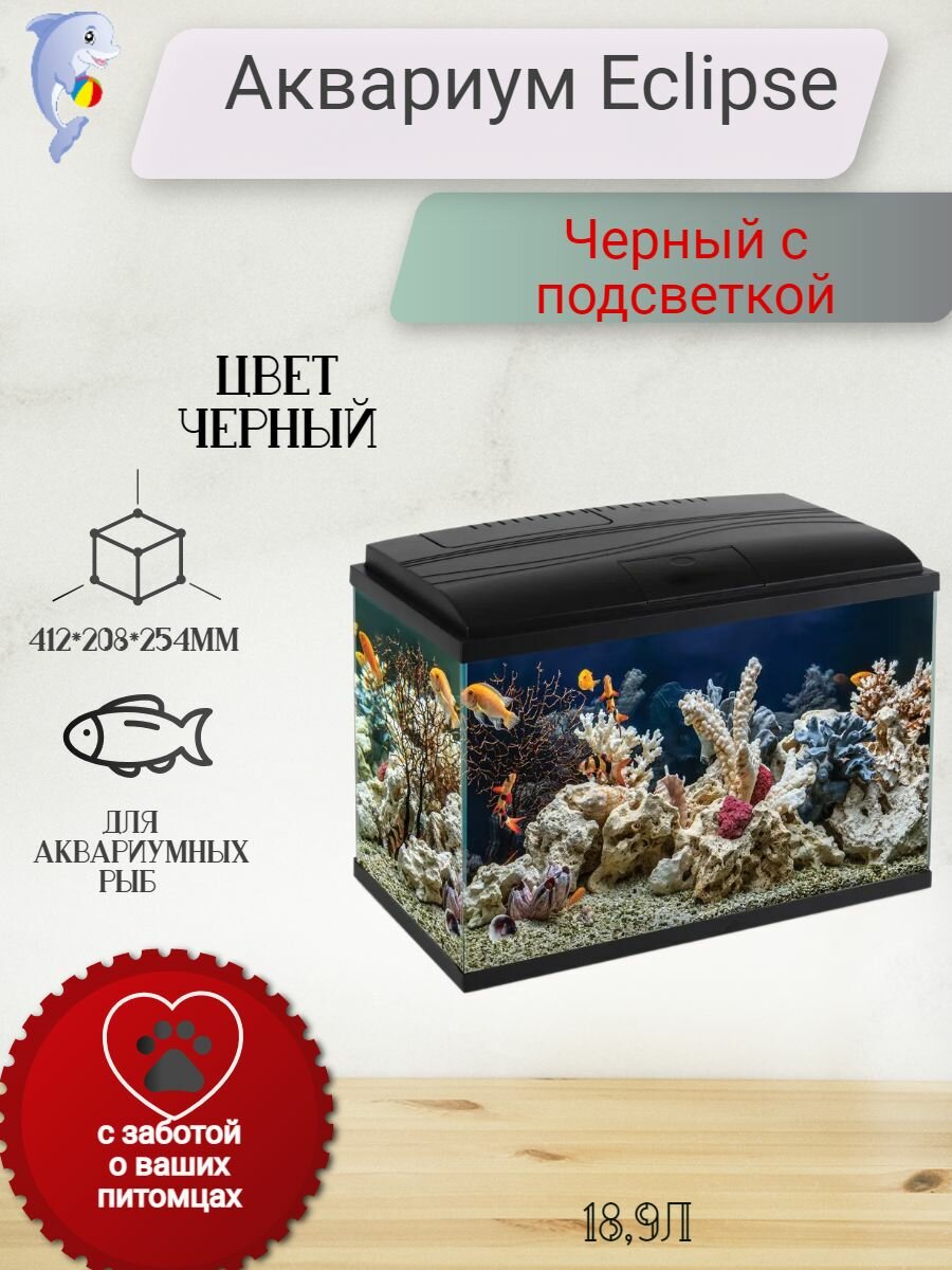 Аквариум Eclipse, черный, 18,9л, черный, 412*208*254мм интересное: