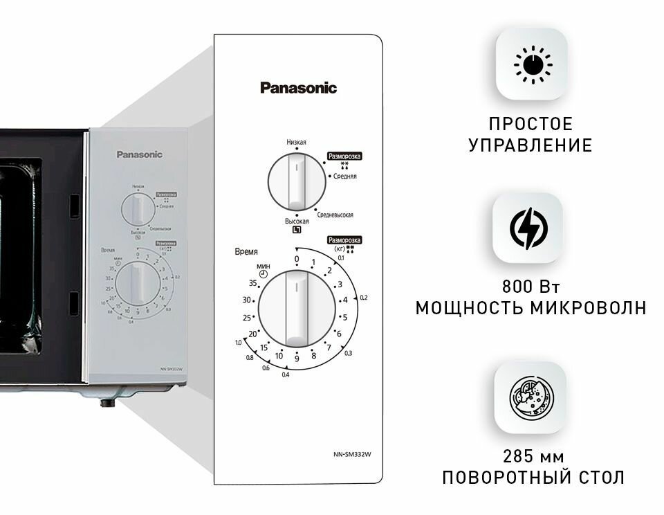 Ниже Вы можете прочитать отзывы на Микроволновая печь Panasonic NN-SM332WZPE белый, ознакомится с подробными характеристиками, посмотреть интересные обзоры и фотографии на Микроволновая печь Panasonic NN-SM332WZPE белый.