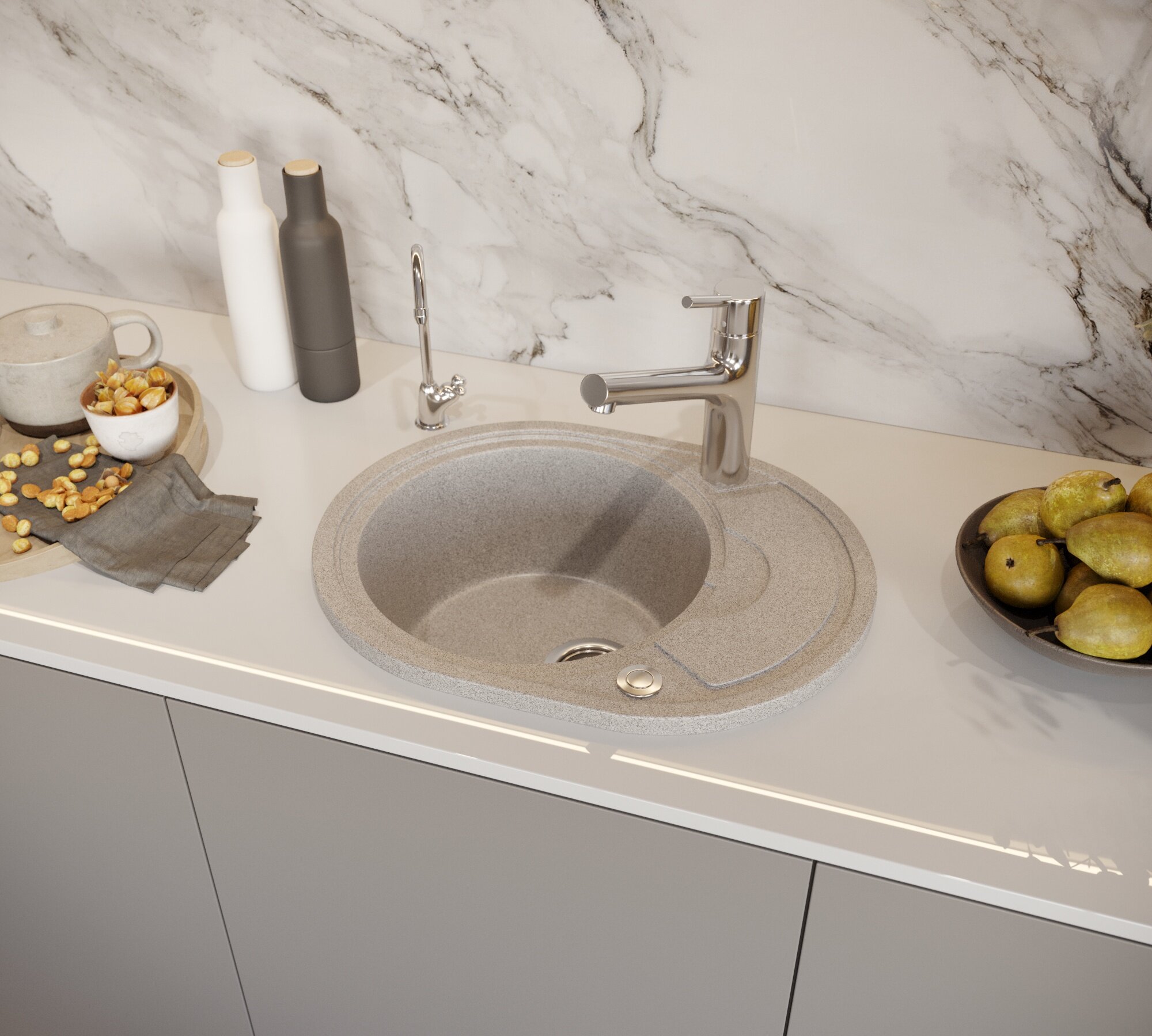 Кухонная мойка Карельский камень модель 150 (575*470) Q6 Слоновая кость