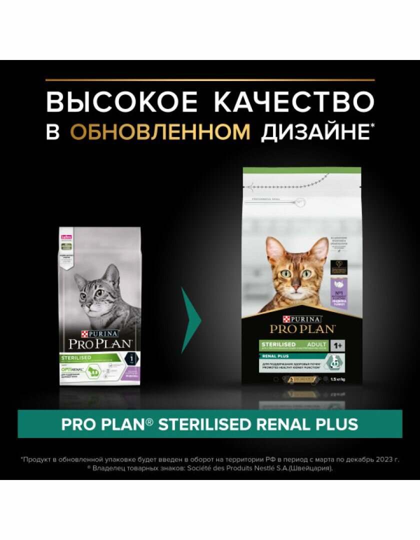 PRO PLAN CAT STERILISED RENAL PLUS TURKEY для взрослых кастрированных котов и стерилизованных кошек с индейкой (1,5 кг)