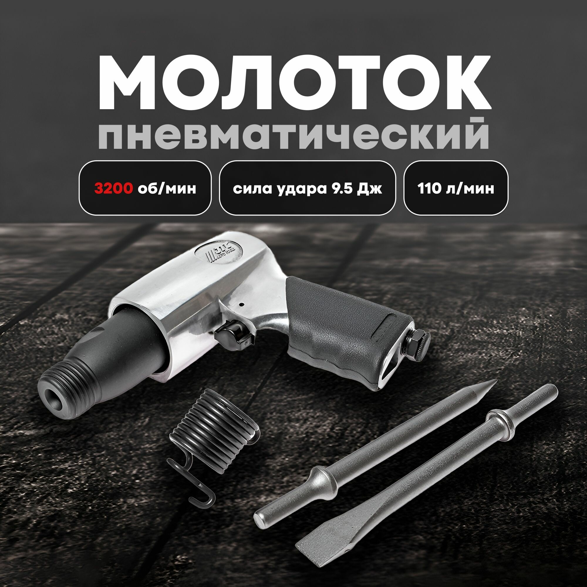 пневмозубило 3200 ударов в минуту 2 зубила в комплекте