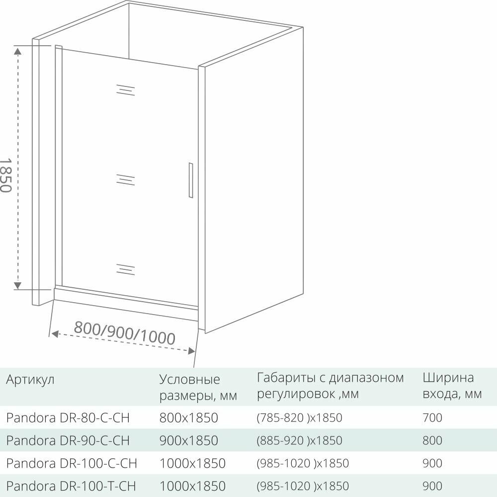 Душевая дверь Good Door PANDORA DR-80-C-CH интересное: