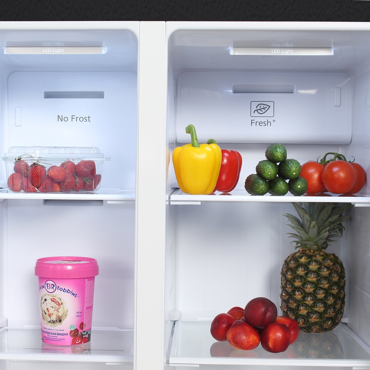 | Отзыв: | Стильный огромный холодильник, просто моя мечта, которая наконец-то сбылась. Двери закрываются мягко, плотно, усилий прилагать не нужно. Внутри огромное количество места, нам на самом деле для троих даже многовато. Смотрится невероятно круто, определенно это украшение нашей кухни. |