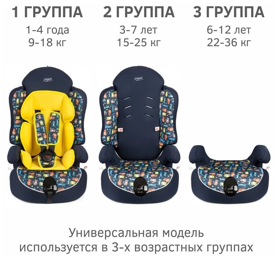 Купить Автокресло группа 1/2/3 (9-36 кг) Siger Прайм Isofix, котики