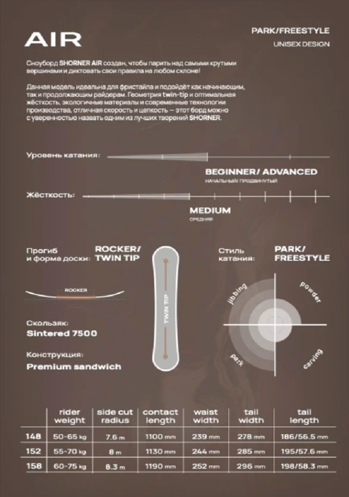 Сноуборд взрослый мужской и женский Shorner Air 148 см. / Фристайл доска интересное: