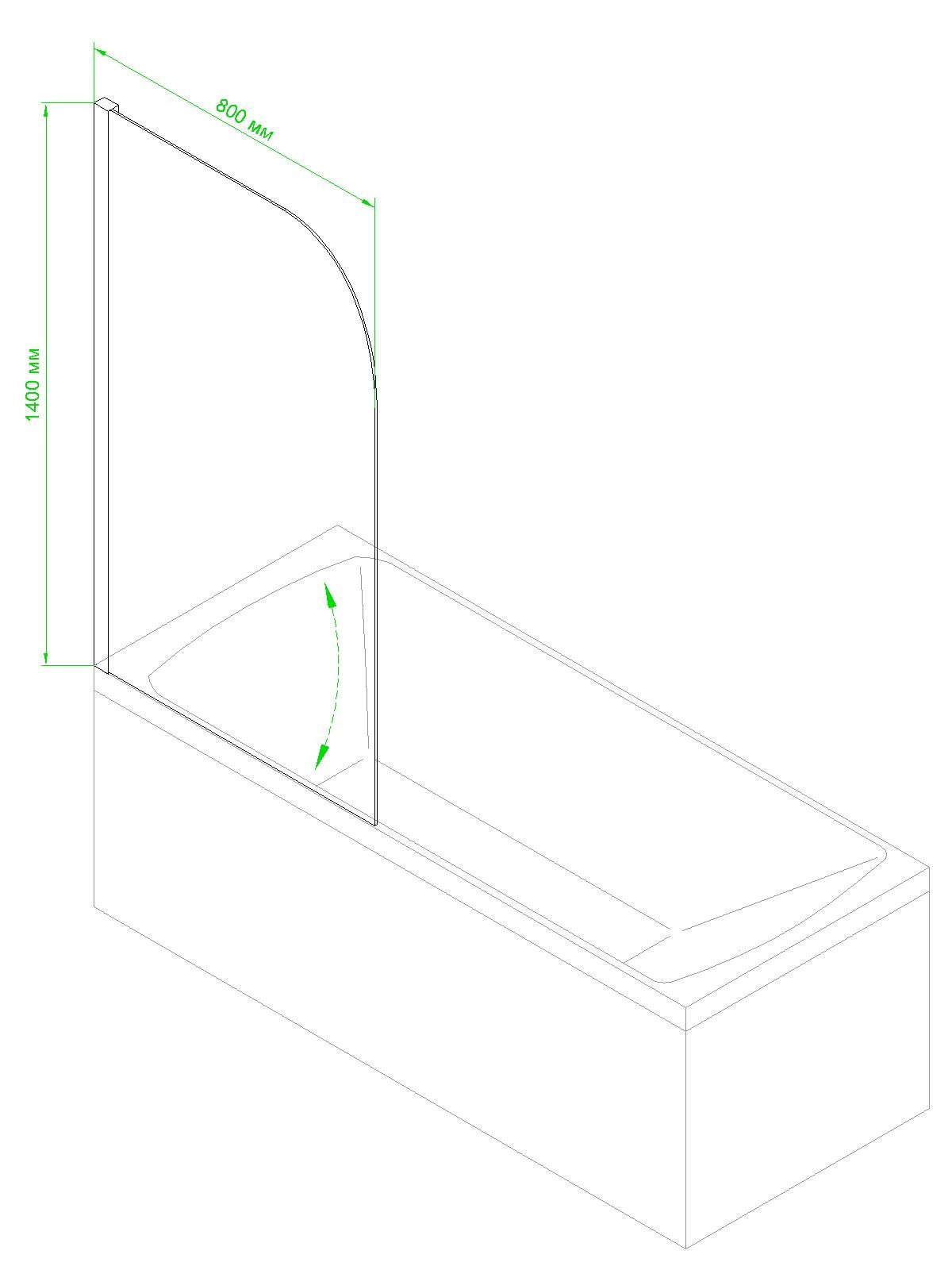Шторка на ванну Aquanet Practic AE10-B-165H150U-CP, прозрачное стекло