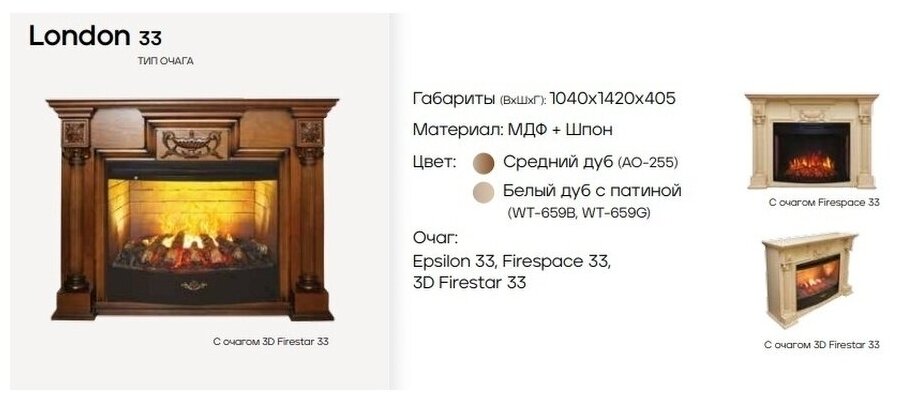 Электрокамин Real Flame London 33 AO-255 с очагом Firespace 33 S IR интересное: