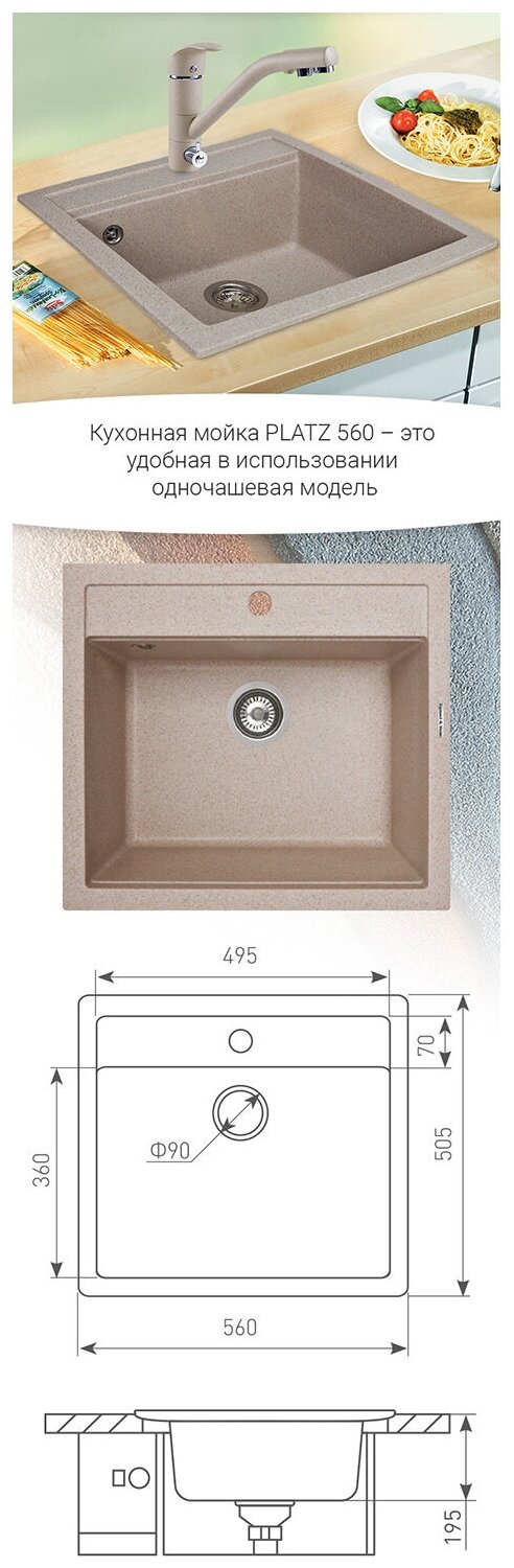 Кухонная мойка ZIGMUND SHTAIN PLATZ 560 (молодое шампанское)
