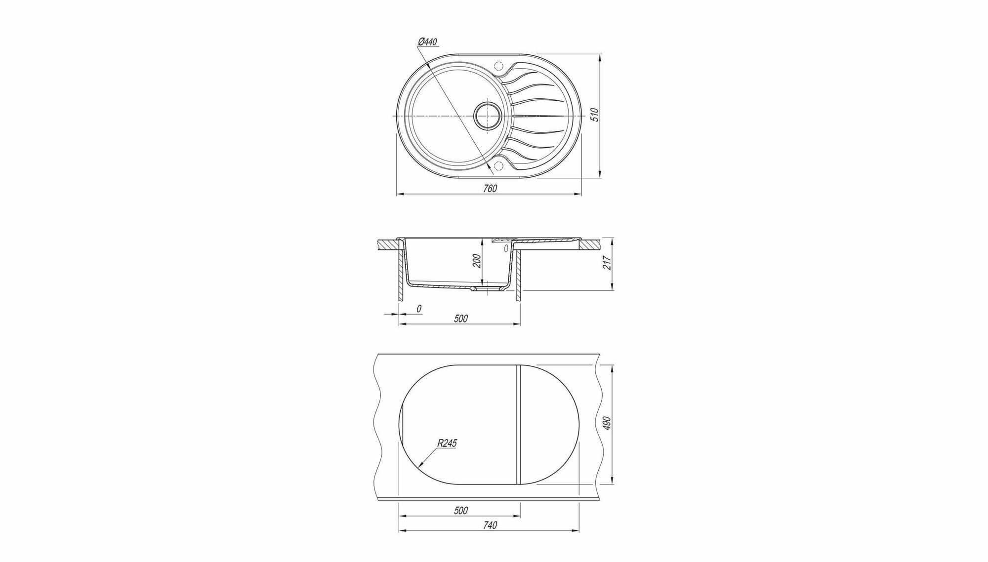 Мойка для кухни врезная каменная Dr. Gans БЕРТА-760, цвет черный, с крылом, овальная, 760х510х217 мм