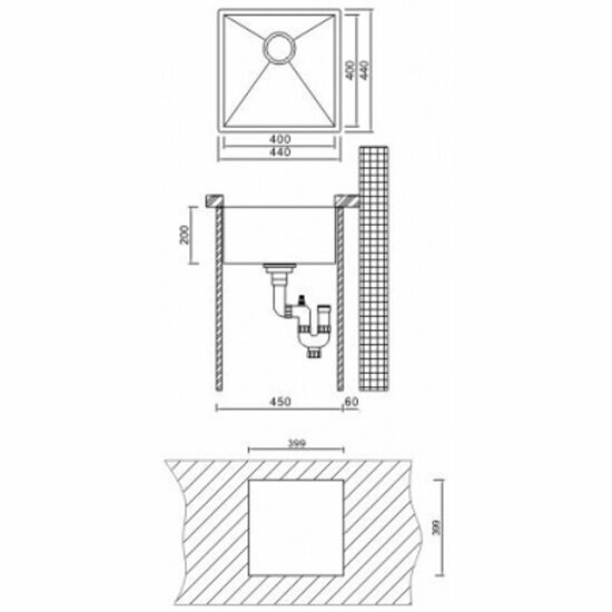 Мойка нержавеющая для кухни OULIN 440х440 OL-F101