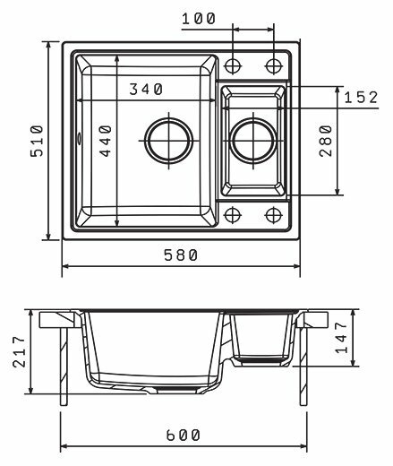 | Плюсы: | две чаши, качество материала, удобство установки как самой раковины, так и смесителя |