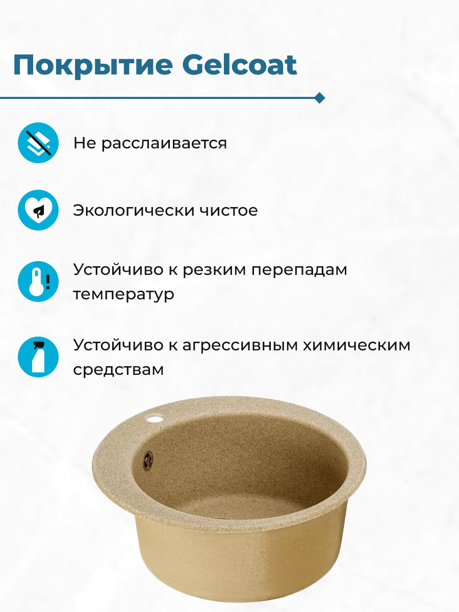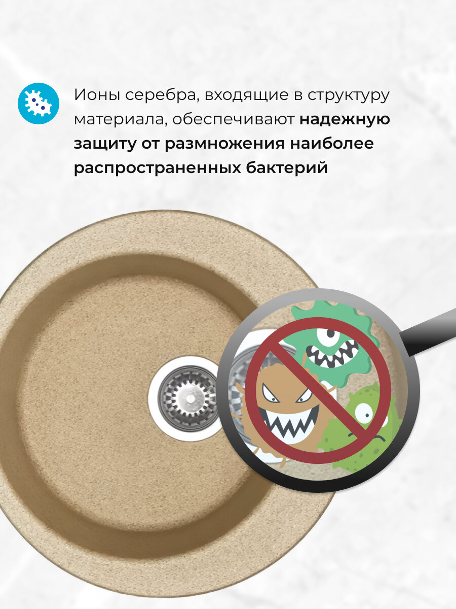 Кухонная мойка AQUATON Иверия 48х48х19 литьевой мрамор, цвет Песочный (1A711032IV220)