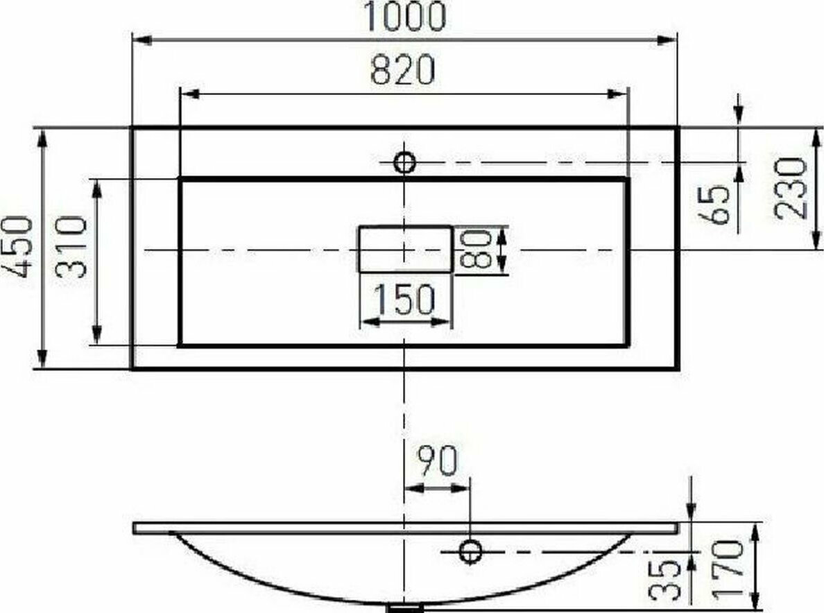 Раковина мебельная AQUATON Премьер М 100х45х17, литьевой мрамор, цвет Белый (1A70473KPR010)
