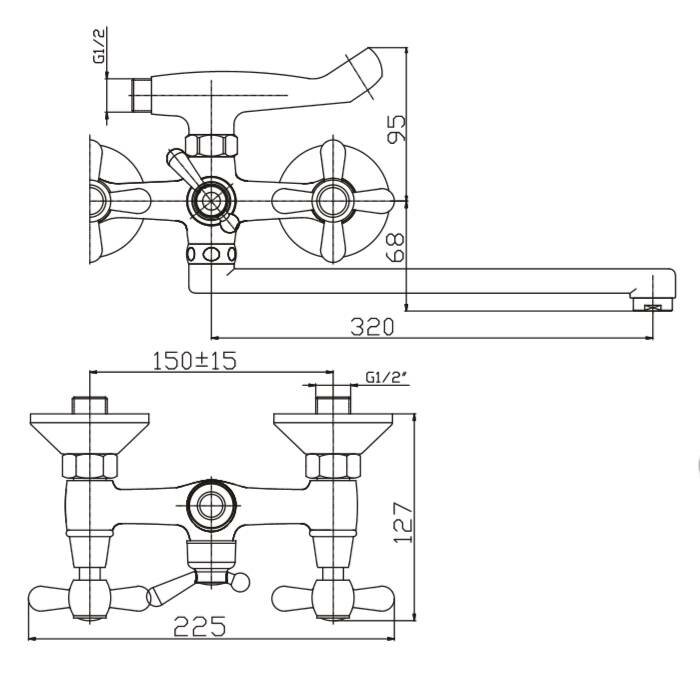 Смеситель для ванны и умывальника 1/2 кер HB2125 HAIBA крест шар див корп. L-нос