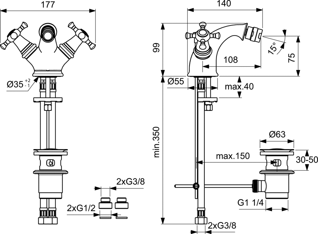 Смеситель для биде двухрычажный, хром, Ideal Standard Reflection B9655LS интересное:
