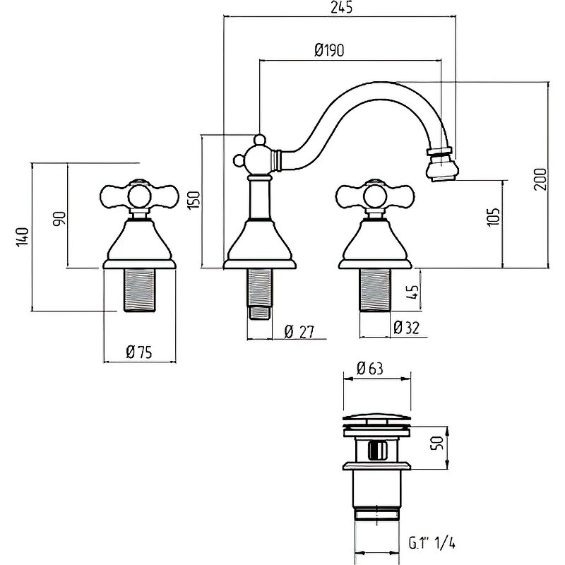 Смеситель для биде на 3 отв. Migliore Provance ML.PRO-8825 золото