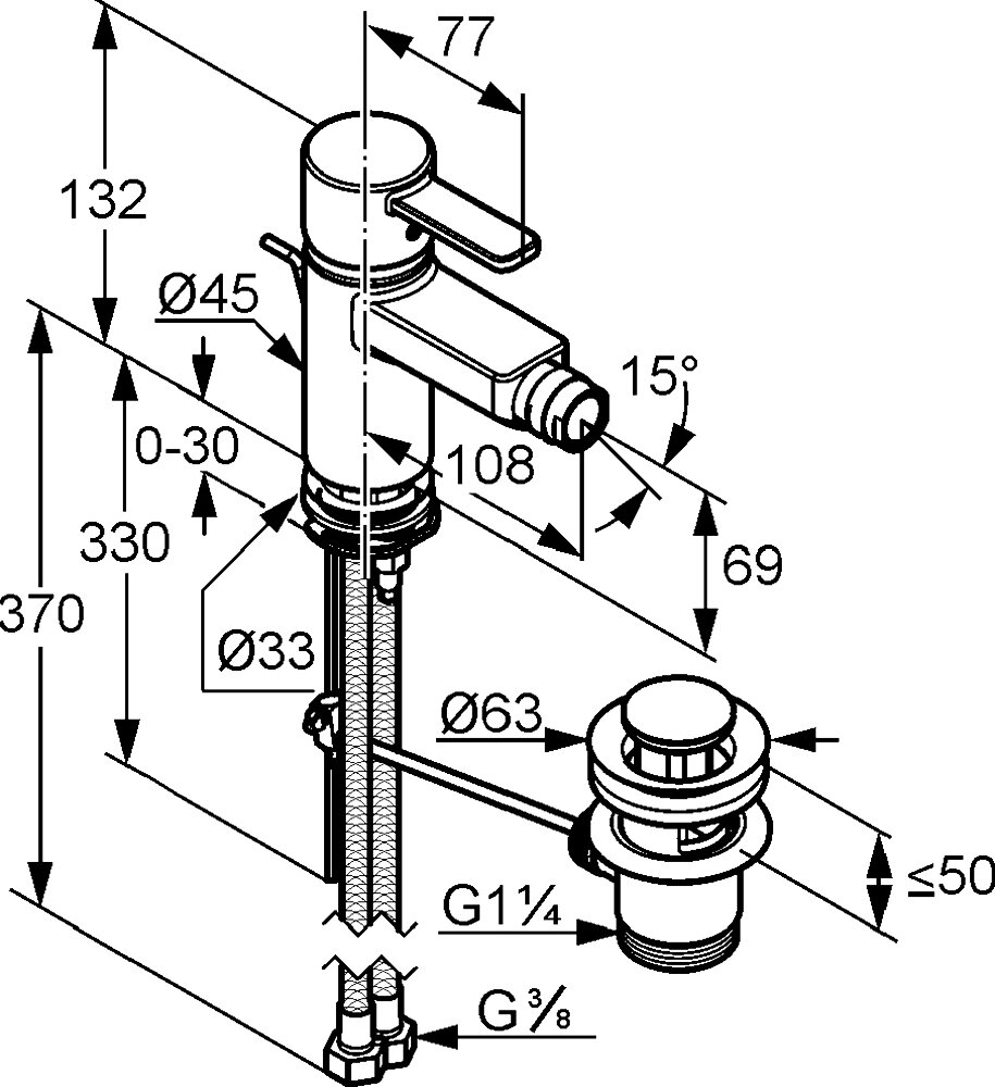 Смеситель Kludi Zenta 385300575 для биде c донным клапаном