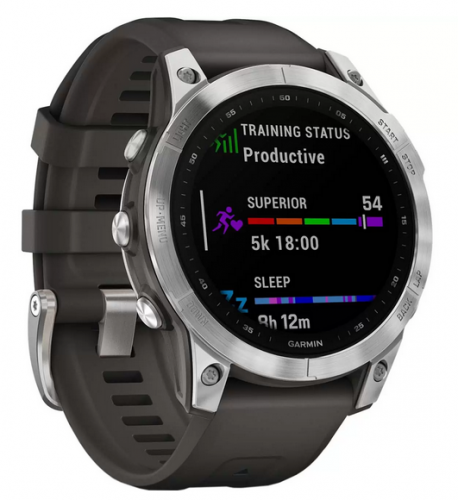 Умные часы Garmin Fenix 7, серебристый с графитовым силиконовым ремешком