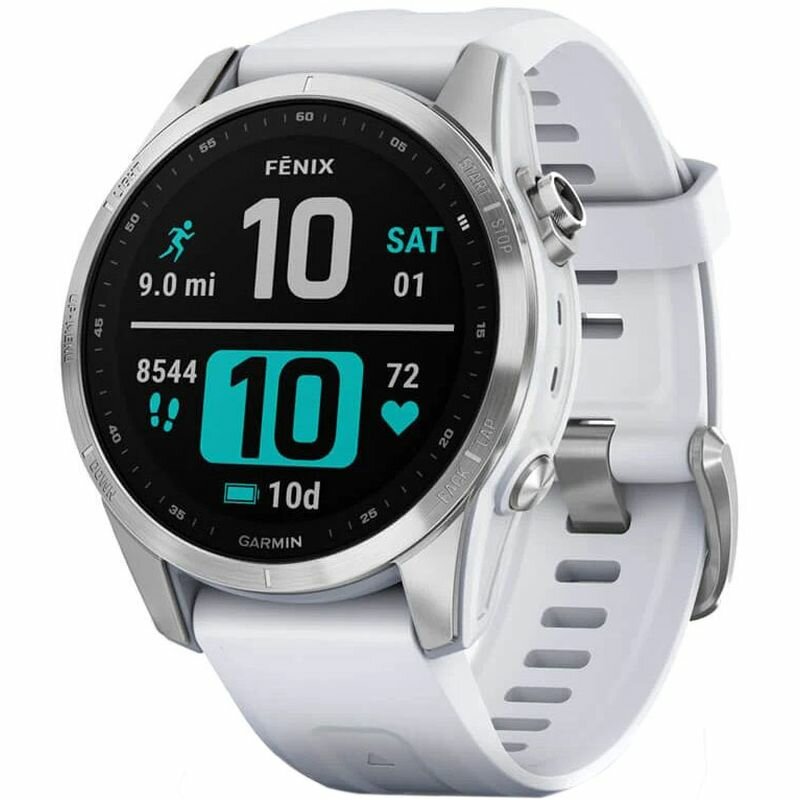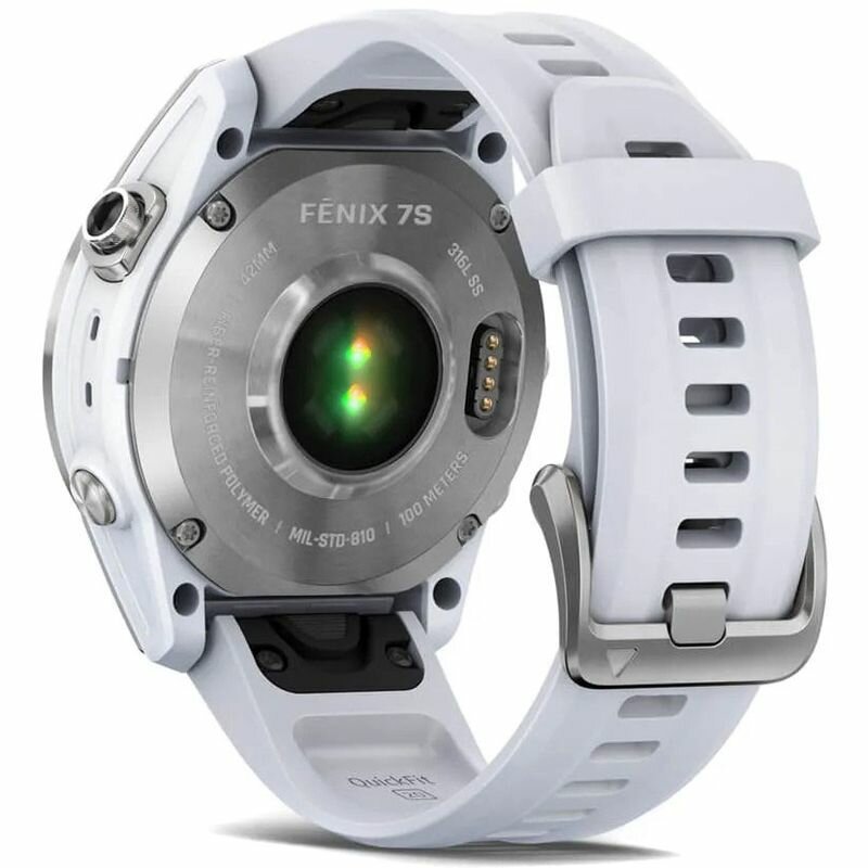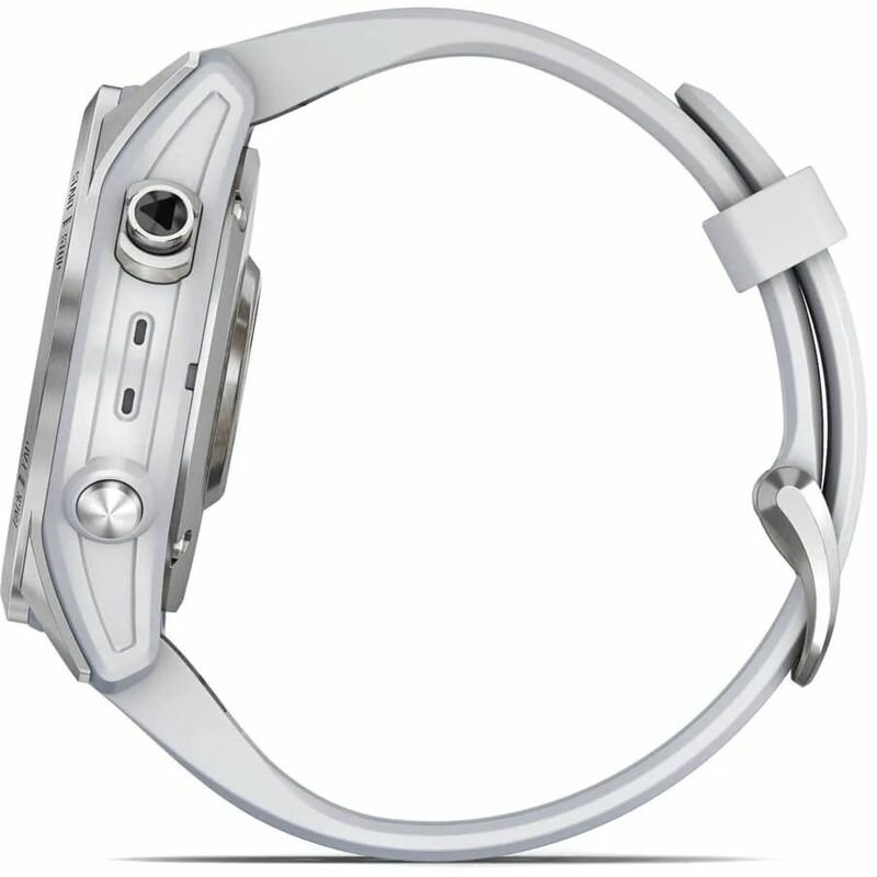 Умные часы Garmin Fenix 7s, серебристый с белым силиконовым ремешком