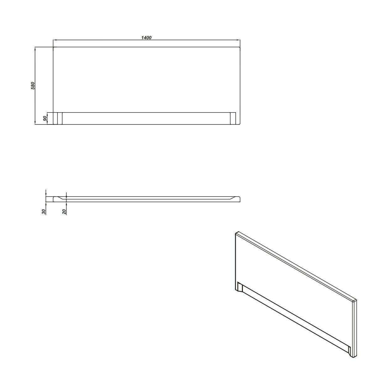Панель для ванны фронтальная UNIVERSAL TYPE 1 140