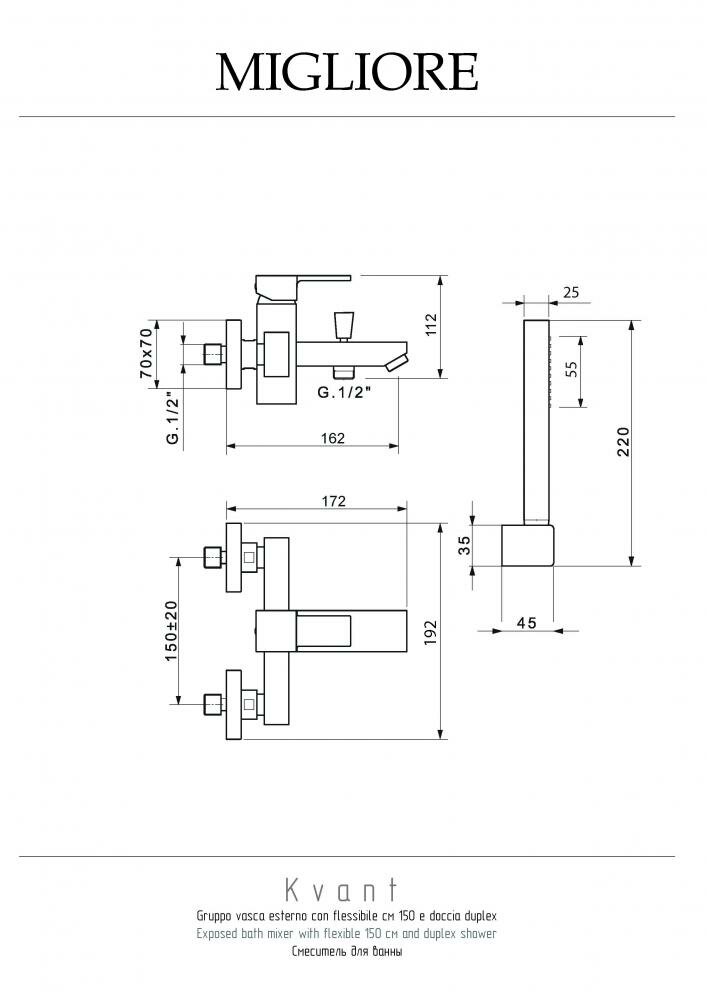 Смеситель Migliore Kvant ML.KVT-2702.CR для ванны с душем