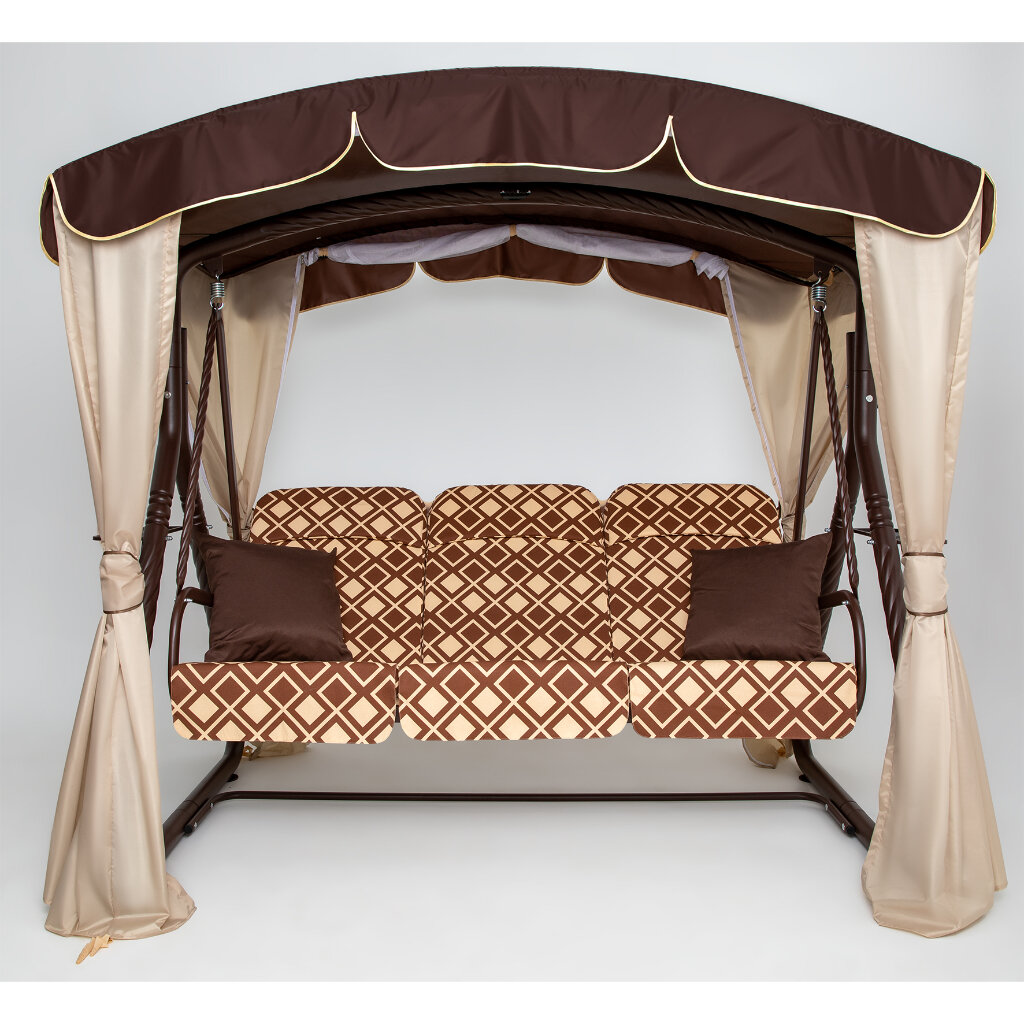 Качели садовые 4-х местные Ольса Шатер ткань панама каркас коричневый, ткань полоска бежево-коричневная