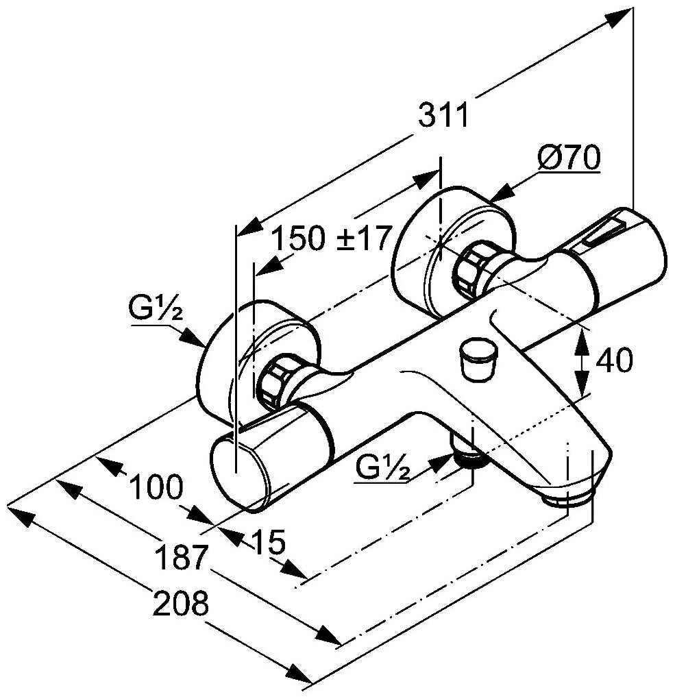 Смеситель термостатический KLUDI ZENTA для ванны и душа, настенный, двухзахватный (хром) 351010538