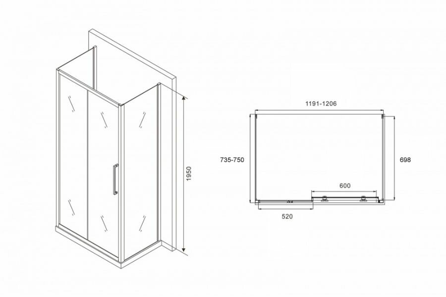 Купить Душевой угол ABBER Schwarzer Diamant AG30120BH-S75B-S75B 120x75 стекло прозрачное/профиль черный
