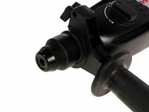 Добрые люди подсказали, что наш бетон лучше дырявить перфоратором, дрель с ударом растянет это сомнительное удовольствие слишком надолго. В итоге, выбрал именно эту модель: приемлемая цена, не слишком тяжёлый, достаточно мощный, может служить просто дрелью – только надеть сверлильный патрон вместо СДС буксы. Если зажимать в такой патрон биты, то получается нормальный шуруповёрт, тяжеловатый, правда. Понравилась дополнительная обрезиненная рукоятка, без неё было бы непросто удержать инструмент при работе буром. Приятно, что она фиксируется в любом положении. Кстати, патрон для буров очень удобный. Чемоданчик достаточно удобен и для хранения, и для транспортировки. В общем и целом, для домашних надобностей хорош, но есть ощущение, что и с более напряжными задачами справится. |