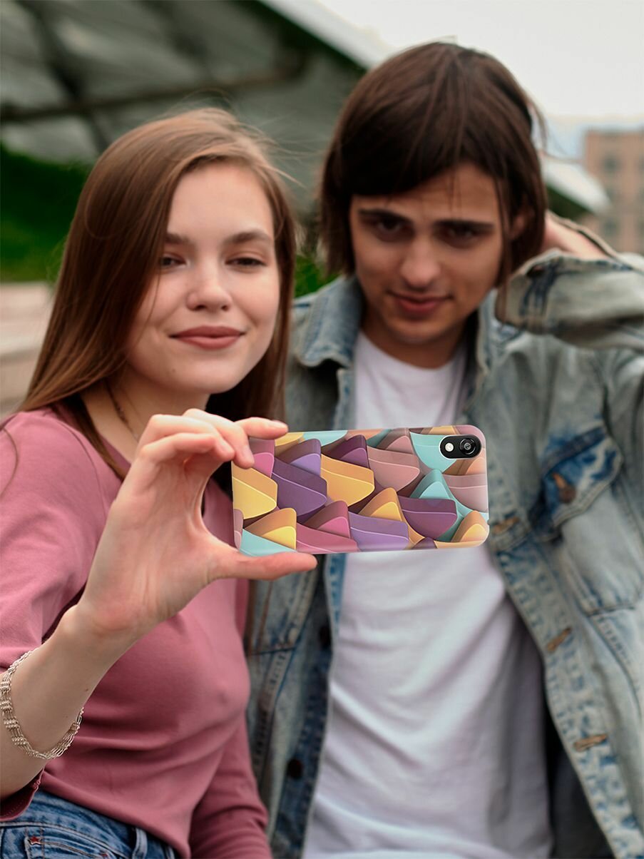 СохранитьСиликоновый чехол Желто-розовые фигуры на Huawei Y5 (2019) / Honor 8S / Хуавей У5 2019 / Хонор 8с с эффектом блика интересное: