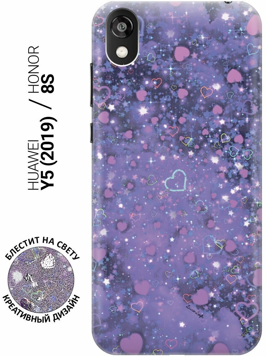 Силиконовый чехол на Honor 8S / Huawei Y5 (2019) / Хуавей У5 2019 / Хонор 8с с эффектом блеска "Любовь в фиолетовом цвете"