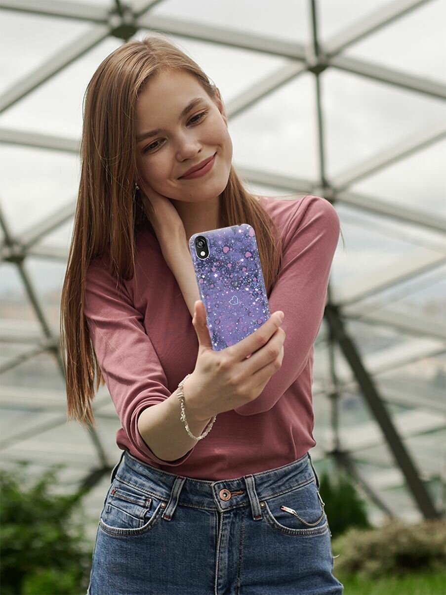 Силиконовый чехол на Honor 8S, Huawei Y5 (2019), Хуавей У5 2019, Хонор 8с с эффектом блеска "Любовь в фиолетовом цвете"
