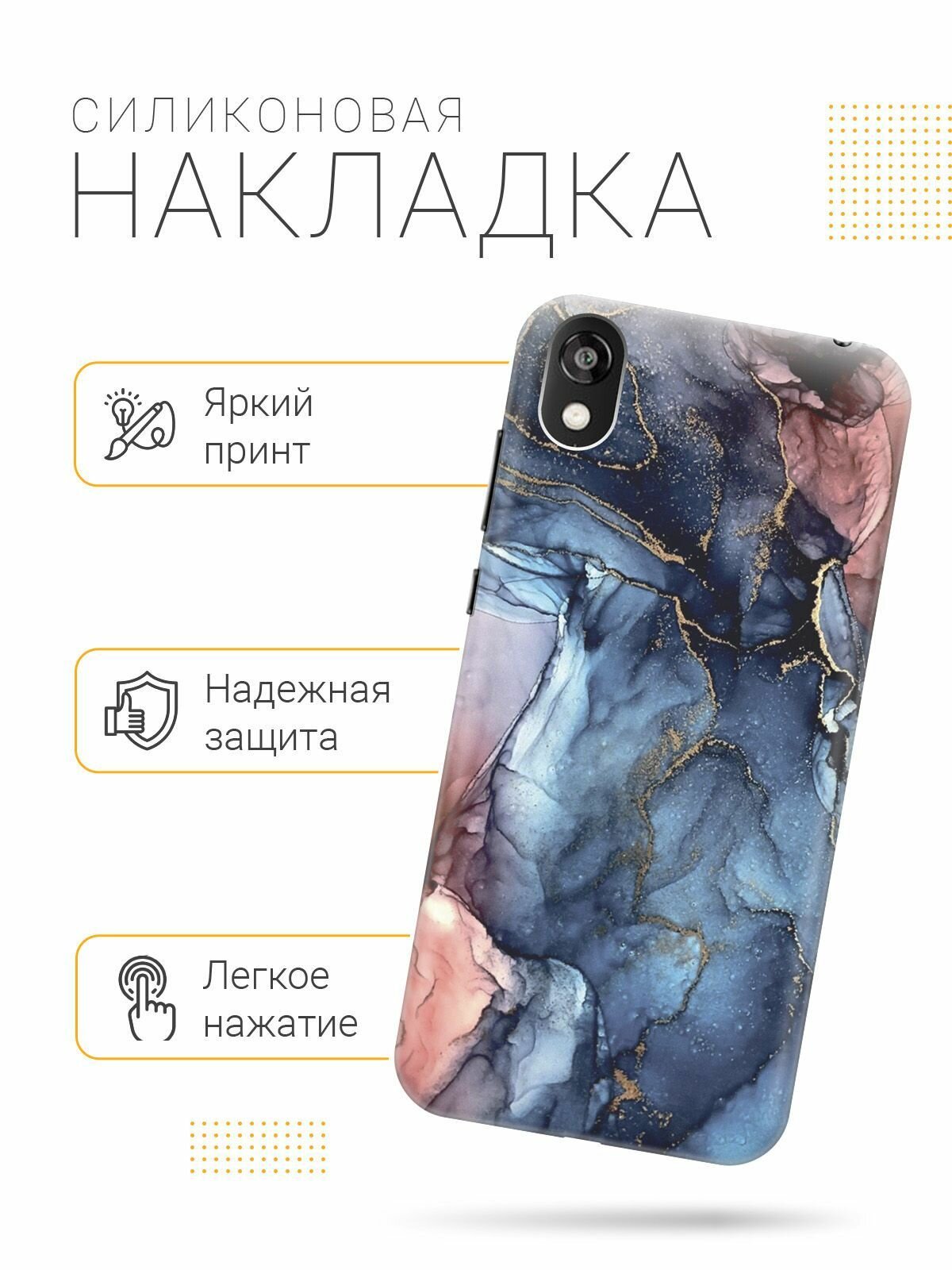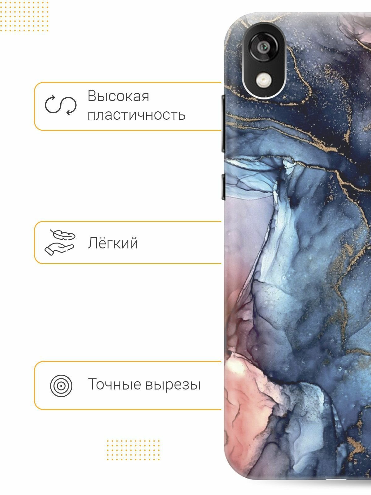 Силиконовый чехол на Honor 8S / Huawei Y5 (2019) / Хуавей У5 2019 / Хонор 8с с принтом "Сине-розовый мрамор" интересное:
